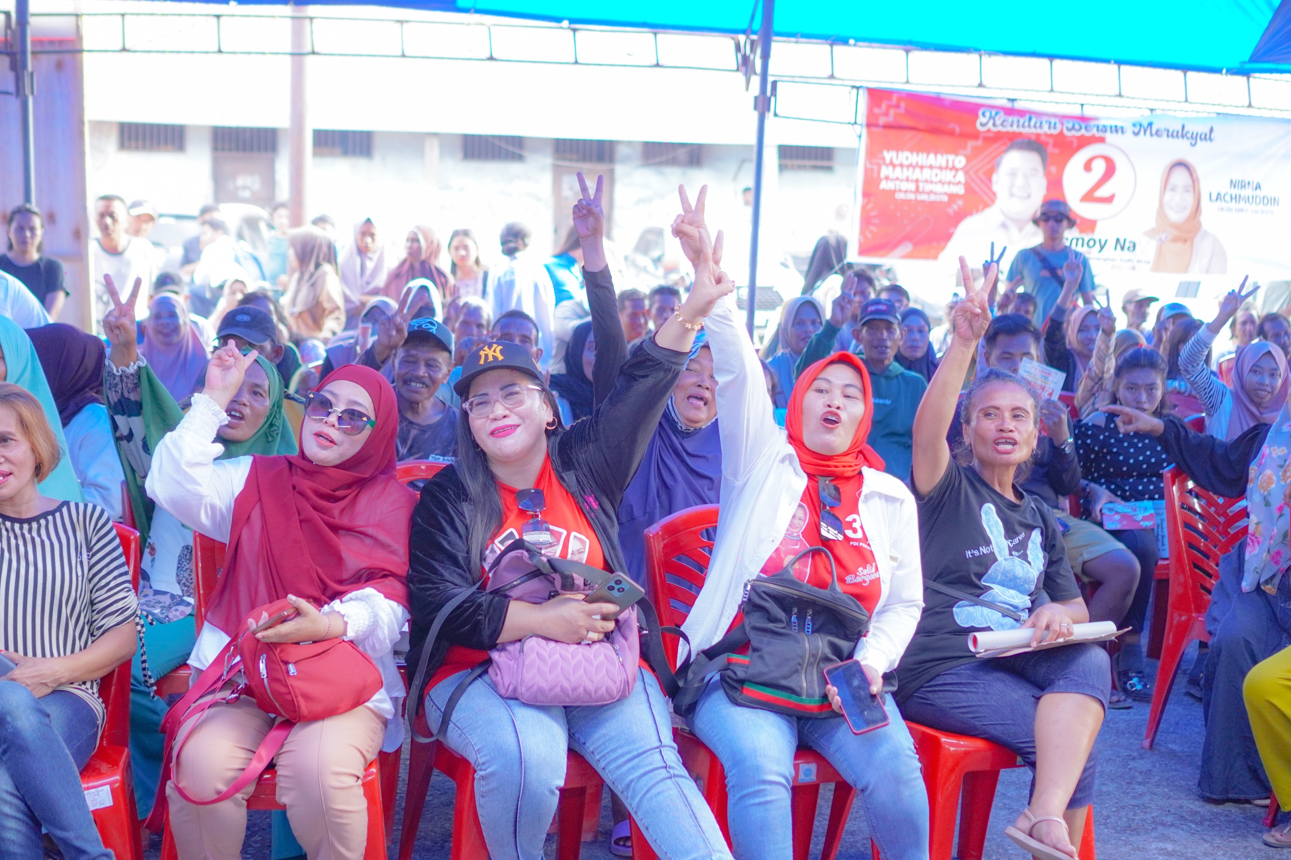 Warga pun sangat antusias atas pemaparan program 7 menyala paslon Yudhi-Nirna untuk kemajuan Kota Kendari. Mereka pun meneriakan wali kota pada Yudhianto Mahardika dan Nirna Lachmuddin.