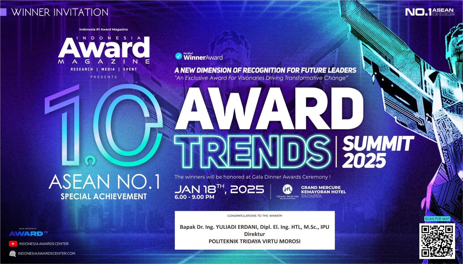 “Penilaian dilakukan untuk prestasi yang kreatif dan inovatif yang dianggap mampu menginspirasi dan berkontribusi bagi Indonesia. Polietknik Tridaya Virtu Morosi merupakan salah satu perguruan tinggi swasta yang dinilai akan berkembang pesat melihat progresnya yang aktif membanguan manajemen yang handal dan terukur,“ ucapnya.